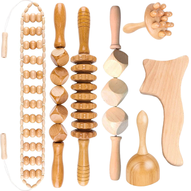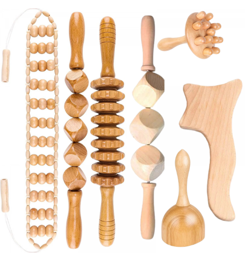 بفضل أشكالها المتنوعة مثل الرولر، وألواح النحت، وأدوات التدليك المنحنية، يمكن استهداف مناطق محددة من الجسم للمساعدة في تفتيت الدهون الموضعية، وشد البشرة، وتعزيز الاسترخاء. مصنوعة من خشب طبيعي متين وصديق للبيئة، مما يضمن انزلاقاً سلساً على البشرة وتجربة علاجية احترافية.